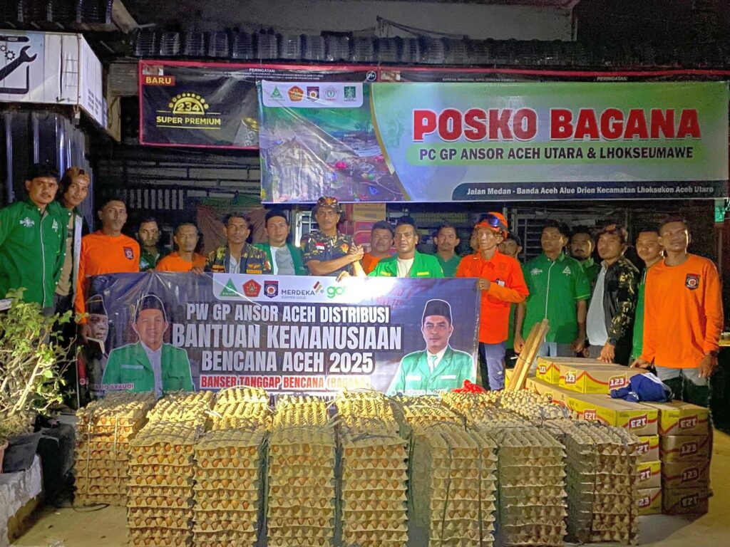 INFOACEHUTARA.com — Pimpinan Wilayah Gerakan Pemuda Ansor (GP Ansor) Aceh telah menyalurkan bantuan logistik untuk korban bencana banjir di Kabupaten Aceh Utara. Penyerahan bantuan ini dilakukan di posko Banser Tanggap Bencana (Bagana) GP Ansor Aceh Utara, Alue Drien, Lhoksukon, pada Rabu (10/12/2025) malam.