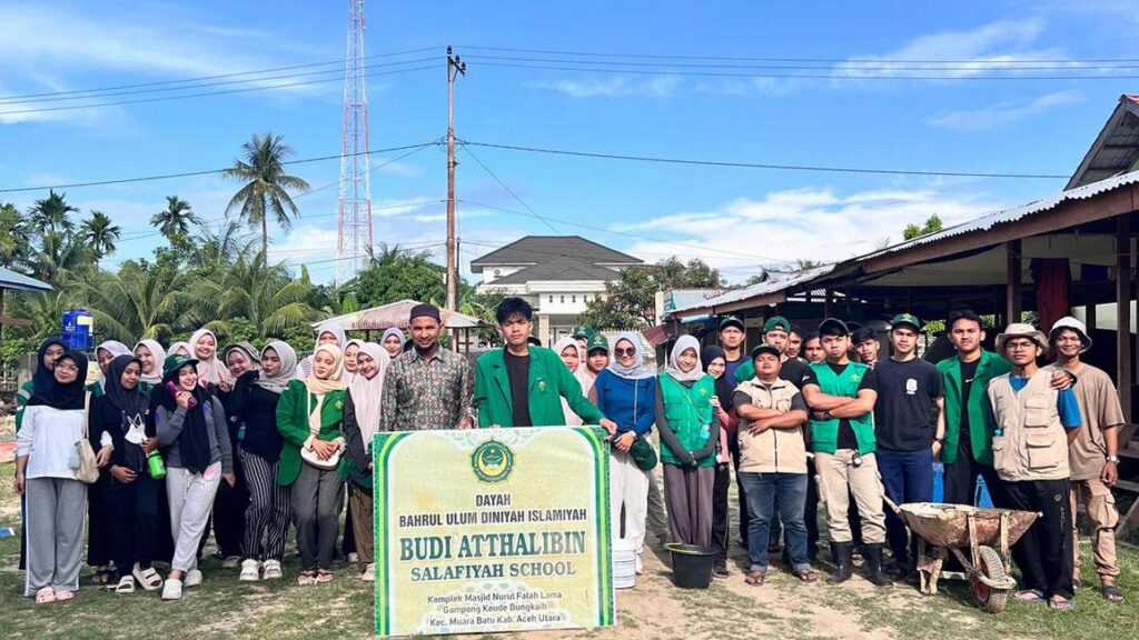 INFOACEHUTARA.com — Mahasiswa Kuliah Kerja Nyata Pembelajaran Pemberdayaan Masyarakat (KKN-PPM) Universitas Malikussaleh (Unimal) Kelompok 09 melaksanakan aksi sosial berupa pembersihan lingkungan pascabanjir di Balai Pengajian Bahrul U’lum (Dayah Budi Atthalibin), Desa Keude Bungkaih, Kecamatan Muara Batu, Kabupaten Aceh Utara, pada Selasa (20/1/2026).
