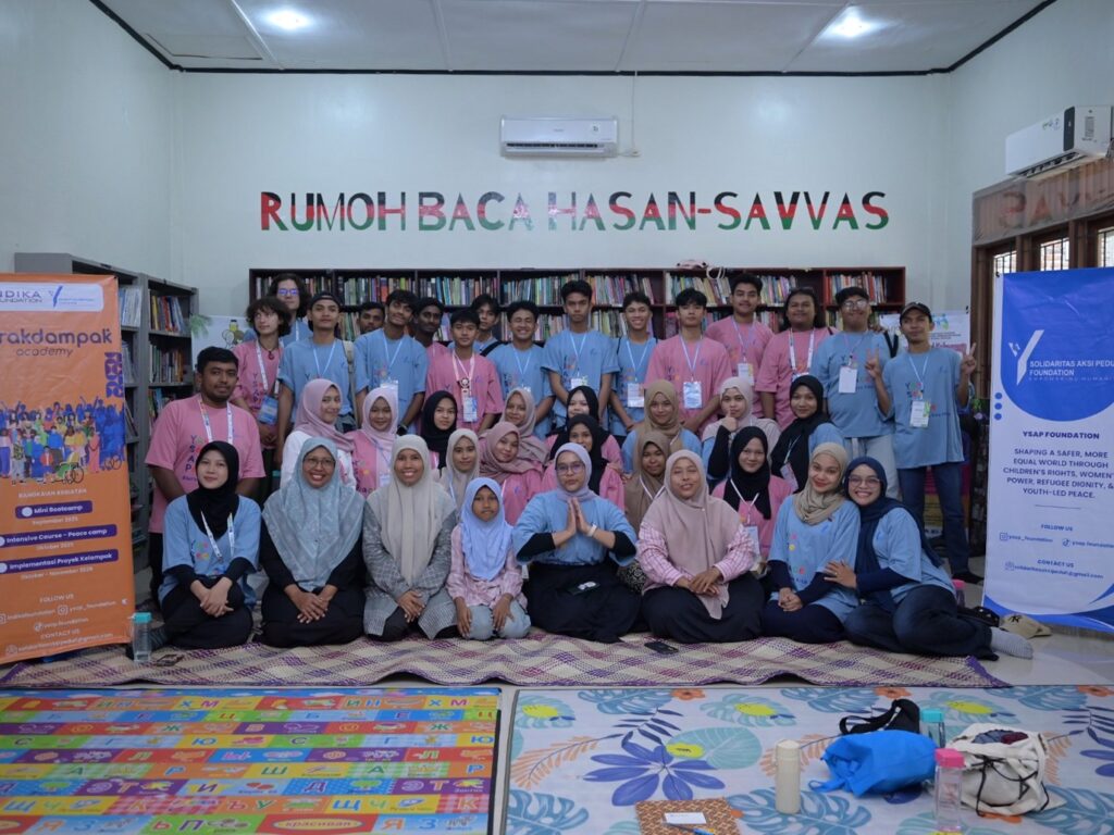Peserta Peace Camp 2025 saat mengunjungi Rumoh Baca Hasan Savvas di Lhokseumawe dalam rangkaian kegiatan Gerak Dampak Academy pada 10–12 Oktober 2025. 📷: Dok. YSAP